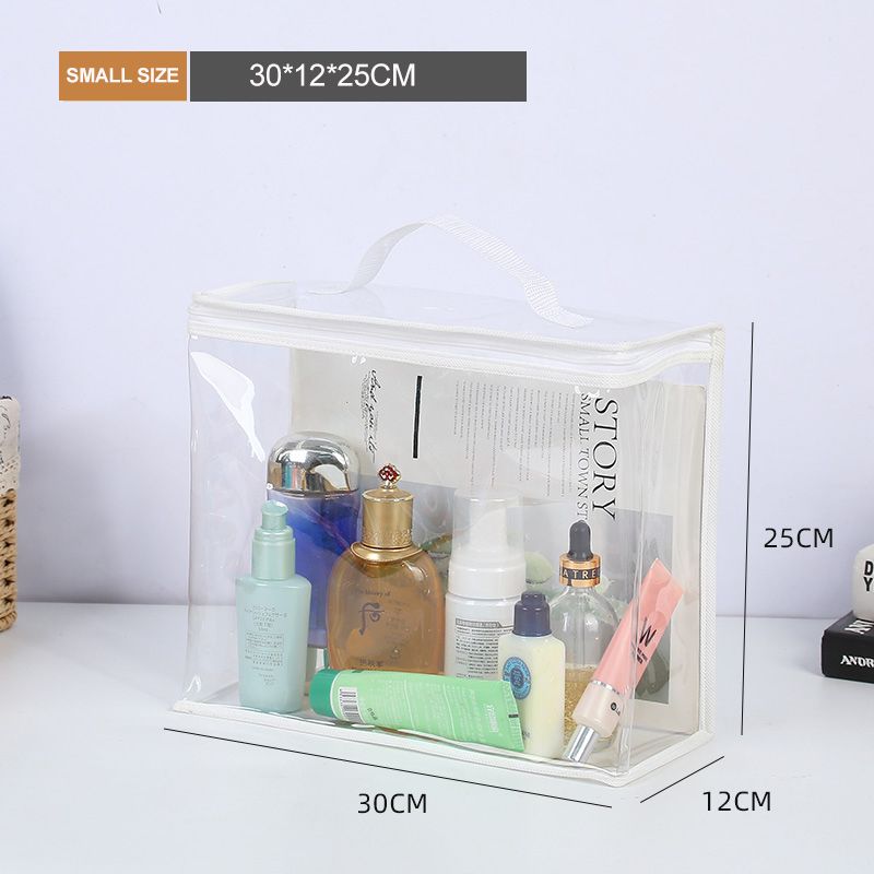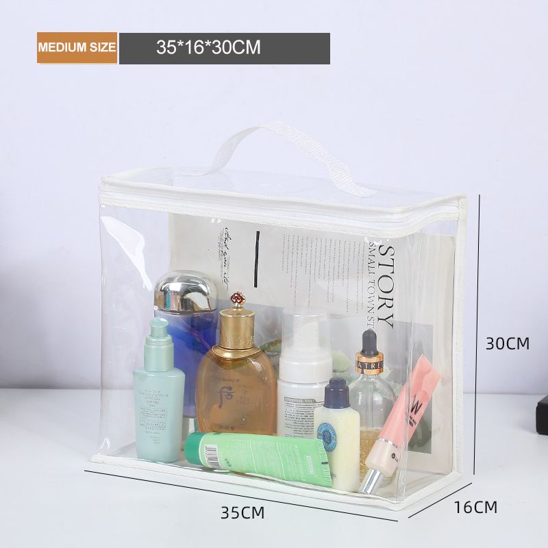 இதன் மூலம் உள்ளடக்கங்களைக் காணலாம்PVC தெளிவான தையல் ஜிப்பர் பை, உங்களுக்குத் தேவைப்படும்போது பொருட்களை எளிதாக பையிலிருந்து வெளியே எடுக்கவும். இது அழகுசாதனப் பொருட்களுக்கு மட்டுமல்ல, படுக்கைக்கும் பரவலாகப் பயன்படுத்தப்படுகிறது. கோடையில் தெளிவான தையல் ஜிப்பர் பைகளை கடற்கரைக்கு எடுத்துச் செல்வது ஒரு நல்ல தேர்வாகும், இது பாட்டில் தண்ணீர், டவர், புத்தகங்கள், சன்ஸ்கிரீன் போன்ற உங்கள் பொருட்களை ஈரப்பதம் அல்லது மணலில் இருந்து பாதுகாக்கும். உங்கள் பீச் லவுஞ்ச் நாற்காலிக்கு அருகில் தெளிவான ஜிப்பர் பையை வைக்கவும், நீங்கள் விரும்பும் போதெல்லாம் அதிலிருந்து பொருட்களை எடுத்துக்கொள்வது மிகவும் வசதியானது.