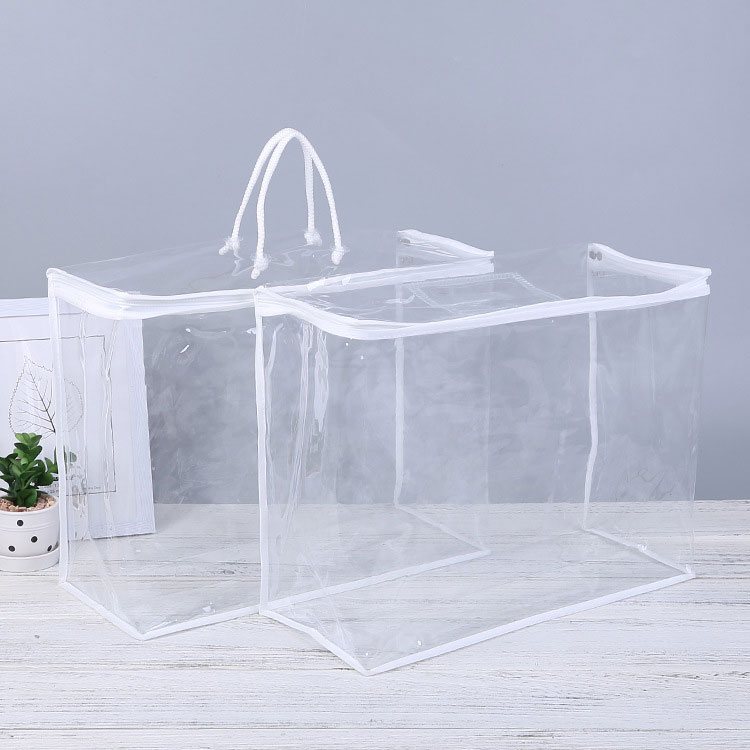 இரண்டு பாணிகள் உள்ளனபி.வி.சி அமைப்பாளர் பை. ஒன்று கைப்பிடிகள், மற்றொன்று கைப்பிடிகள் இல்லாமல் உள்ளது. இது வீட்டில் தினசரி சேமிப்பிற்குப் பயன்படுத்தப்படலாம் அல்லது கடைகளில் அல்லது தொழிற்சாலைகளில் வைத்திருக்கும் பொருட்களில் நிரம்பிய பொருட்களுக்கு பயன்படுத்தப்படலாம். பை வெளிப்படையானதாக இருப்பதால் நீங்கள் உள்ளே உள்ள உள்ளடக்கங்களை தெளிவாகக் காணலாம்.