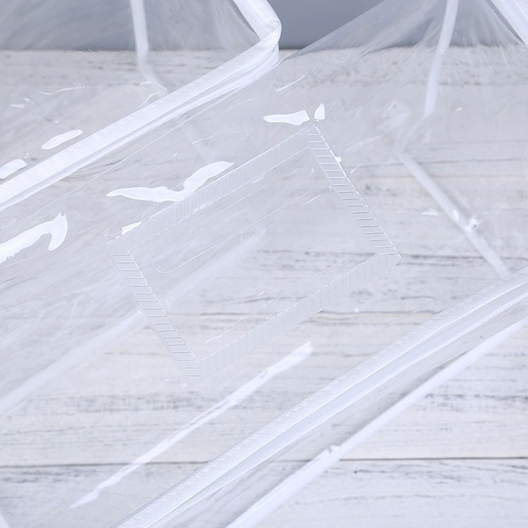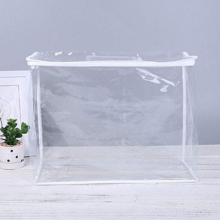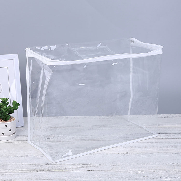 எங்கள் பி.வி.சி அமைப்பாளர் பை வெளிப்படையானது மற்றும் தையல் இயந்திரத்தால் தயாரிக்கப்படுகிறது. உங்கள் படுக்கையை பொதி செய்ய இது மிகவும் பயனுள்ளதாக இருக்கும். பொருள் சுற்றுச்சூழல் நட்பு இல்லை. உங்கள் போர்வைகள் அல்லது குயில்களைப் பிடிக்கும் அளவுக்கு இது துணிவுமிக்கது.